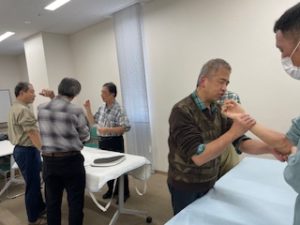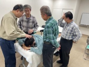 今月は人数が少なかったため基礎班を設けず、2班とも研修班として「小里方式進行表」に沿って実技を進めました。